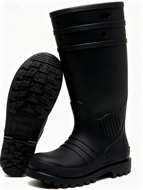 2204 長筒雨鞋是一款防刺穿防滑鋼頭雨鞋,採用耐用 PVC 材質製成, 內部襯裡採用舒適的尼龍面料,鞋頭加厚加固的設計,可防止異物掉落與觸碰尖銳物體時損傷腳面,雨鞋後跟也有防撞凸起的設計,雨鞋底部處則增加紋路深度以增強穩固性,不論是穿脫皆非常方便,此外外部是啞光質感,使產品兼具實用的同時亦不失時尚。此款鋼頭雨鞋具有耐磨、防滑、防水、透氣等特色,非常適登山、戶外活動或建築營造業使用,能夠確保各種環境下的安全性和舒適性。